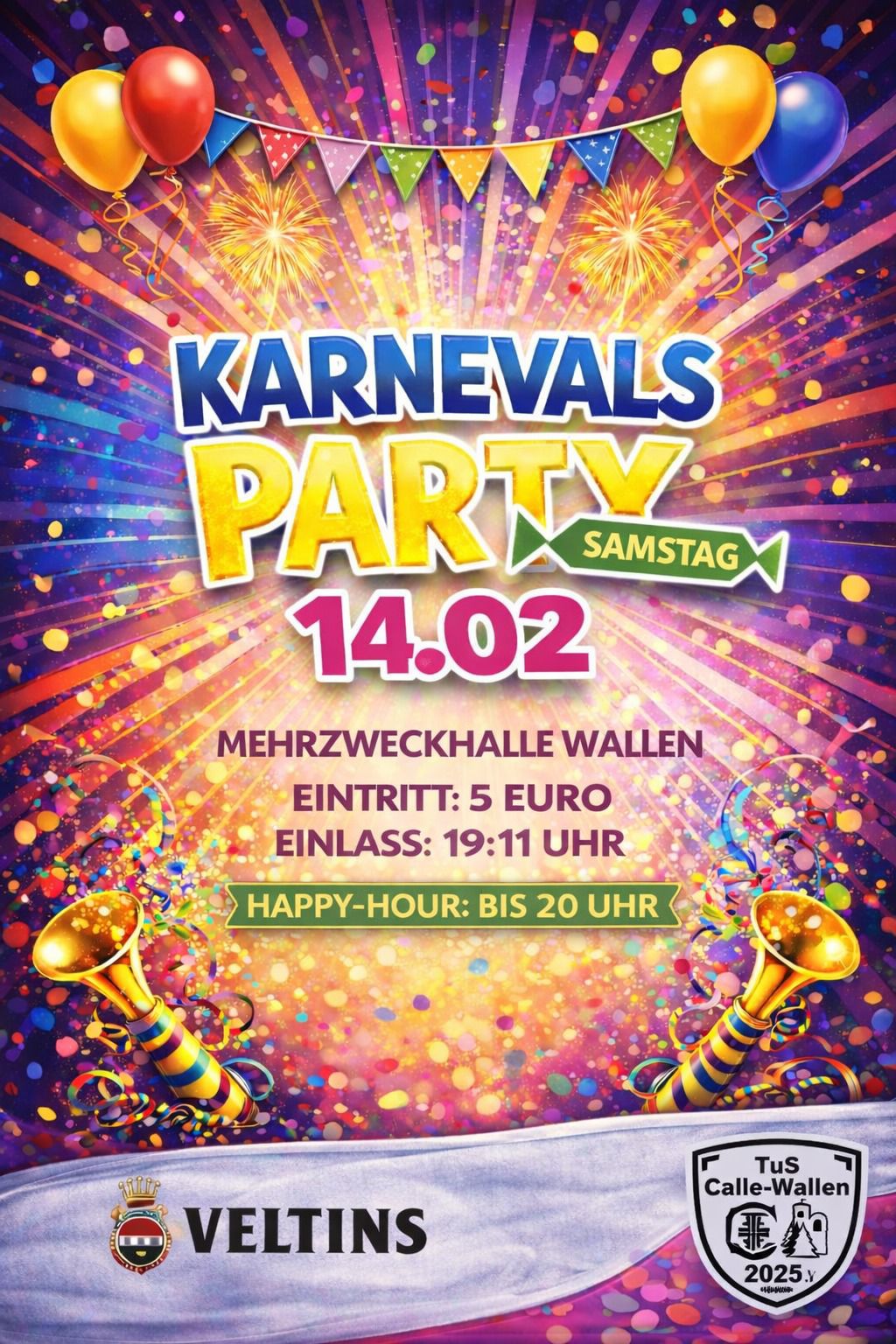 Unsere Fussballabteilung lädt herzlich am Karnevalssamstag 14. Februar in die Mehrzweckhalle in Wallen ein.